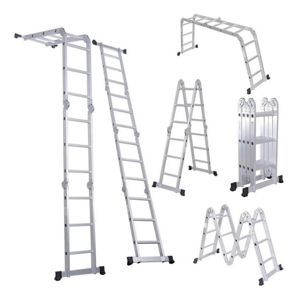 Escada Multiuso: Versatilidade e Segurança em um Único Produto Desenvolvida para Atender Suas Necessidades A Escada Multiuso é fabricada em alumínio de alta qualidade, garantindo uma estrutura compacta e fácil de transportar. Sua super resistência de até 150 kg proporciona segurança em cada degrau. Com pés de borracha que não deslizam, dobradiças de aço e travas de segurança, você pode confiar na estabilidade deste produto. Versatilidade para Profissionais e para o Uso Doméstico Esta escada versátil e multifuncional oferece diferentes posições para se adequar às suas necessidades, seja no ambiente profissional ou doméstico. Cuide da sua segurança e evite subir em cadeiras e banquinhos improvisados, utilize uma escada projetada para oferecer segurança e estabilidade em todas as situações. Medidas para Diferentes Usos: - Altura Esticada: 3,55 m - Altura Aberta (Posição de Pintor): 1,70 m - Altura no Modo Andaime: 0,88 cm - Altura Fechada para Transporte: 0,96 cm - Peso: 8 kg - Suporta: 150Kg Com sua capacidade de suportar até 150 kg, esta Escada Multiuso é a escolha ideal para qualquer tarefa, garantindo segurança e praticidade em cada uso.