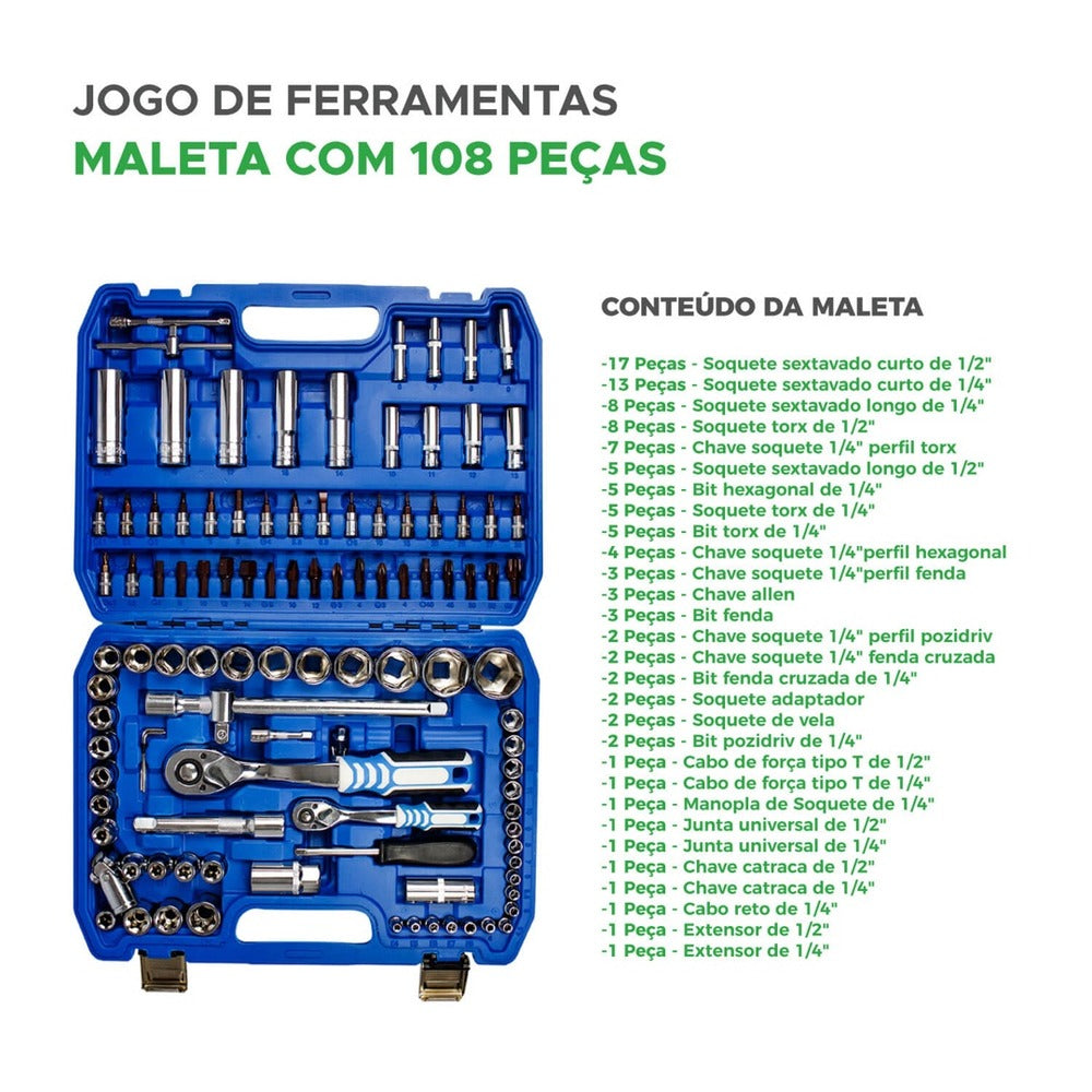 Esse conjunto inclui uma variedade de ferramentas manuais, como chaves, soquetes, alicates e muito mais, projetadas para uma ampla variedade de aplicações, como reparos automotivos, manutenção de veículos e trabalhos de casa. Esses conjuntos de ferramentas são utilizados por mecânicos profissionais, engenheiros e técnicos de manutenção.
