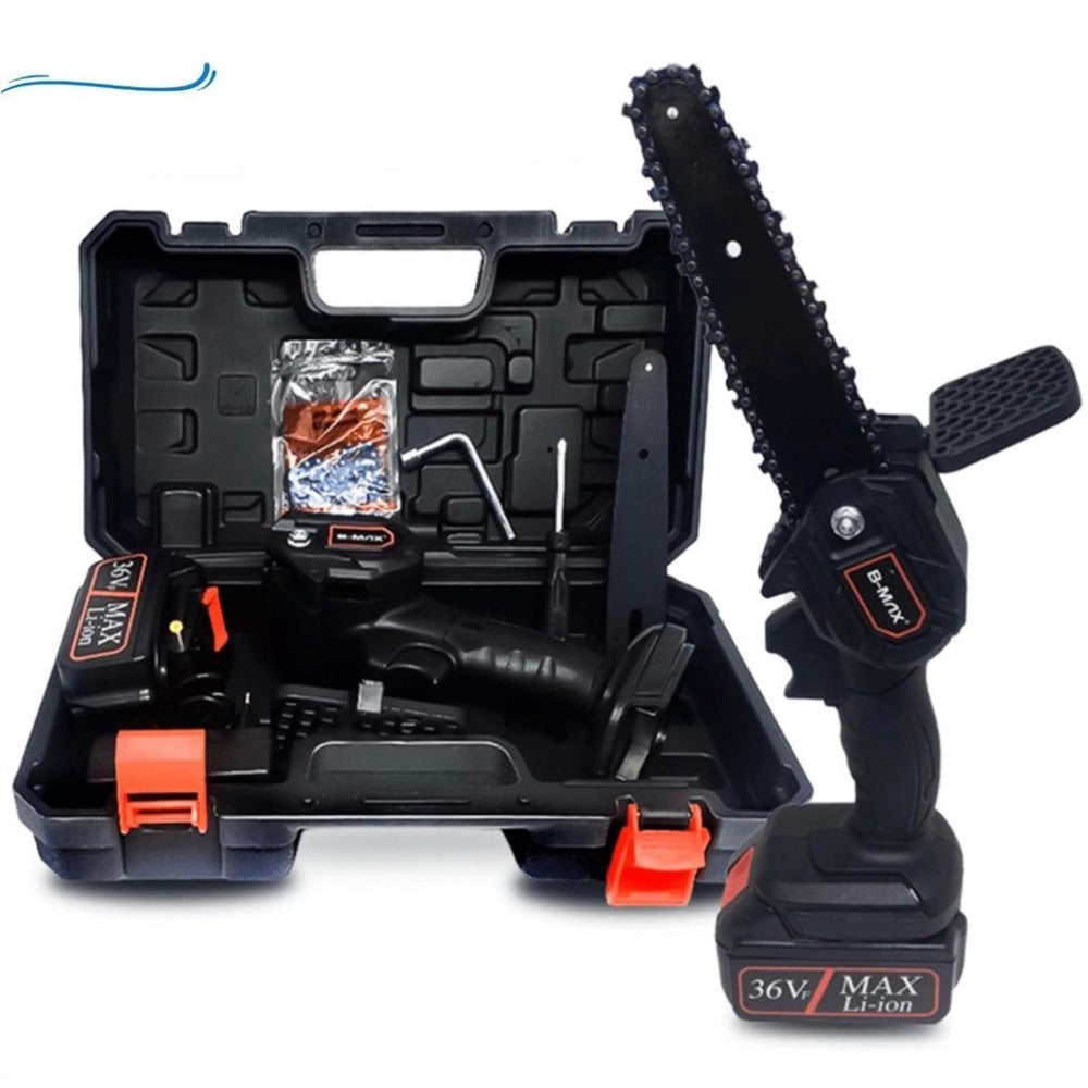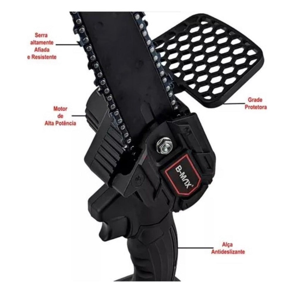 Excelente ergonomiaB-Max Mini Bateria Lítio Moto Serra Bivolt A Eletrica 36v Portátil Portatil 24v Elétrica Motoserra à portati Baterias De Litio Ferramenta de Polda podagemmoto serra motossera paisagismo jardinagem é uma ferramenta fácil de manejar que possui um desenho especial para o usuário: se-adapta com facilidade a qualquer trabalho que desejes realizar. Usa-la em qualquer horárioAgora trabalhar em o horário da sesta não será um problema! já que este aparelho conta com uma pressão sonora de 0 dBA, menor a qualquer motosserra nel mercado. ESPECIFICAÇÕES do produto: - Cor: Preto. - Material: abs + Metal + Componentes Eletrônicos. - Sem fio, Recarregável. - Carregador BIVOLT(110v/220v). - Bateria de 2000 mAh. - Autonomia de Uso: 2 a 3 horas. - Tempo de recarga: 6 a 8 horas. - Tensão nominal: 36v. - Potência: 600 w. - Velocidade do Corte: 5 m/s. - Gatilho para ativação (igual uma furadeira) + Trava de segurança. - Aplicação: Podagem, Trabalhos de carpintaria, jardinagem e hobbies. - Design ergonômico, Portátil. - Fácil transporte e limpeza. DIMENSÕES da serra aproximadas: - Altura Total: 32 cm. - Largura Total: 10 cm. - Comprimento: 10 cm. - Circunferência do Punho: 12 cm. - Gatilho: 2 cm. - Placa guia: 4 polegadas. - Serra de aço: 4 polegadas. - Comprimento do Cabo do Carregador: 70 cm. CONTEÚDO da embalagem: - 01 Mini Moto serra elétrica 36 v. - 01 Bateria. - 01 Placa Guia 4. - 01 Serra 4 Polegadas de Aço. - 01 Chave de boca 10 mm. - 01 Chave de Philips- 01 Carregador bivolt 110v/220v. Perguntas e respostas