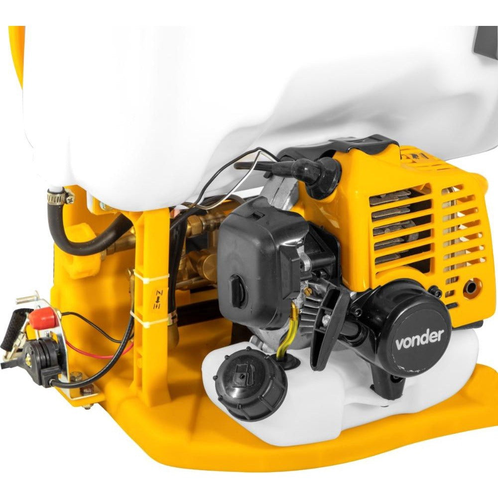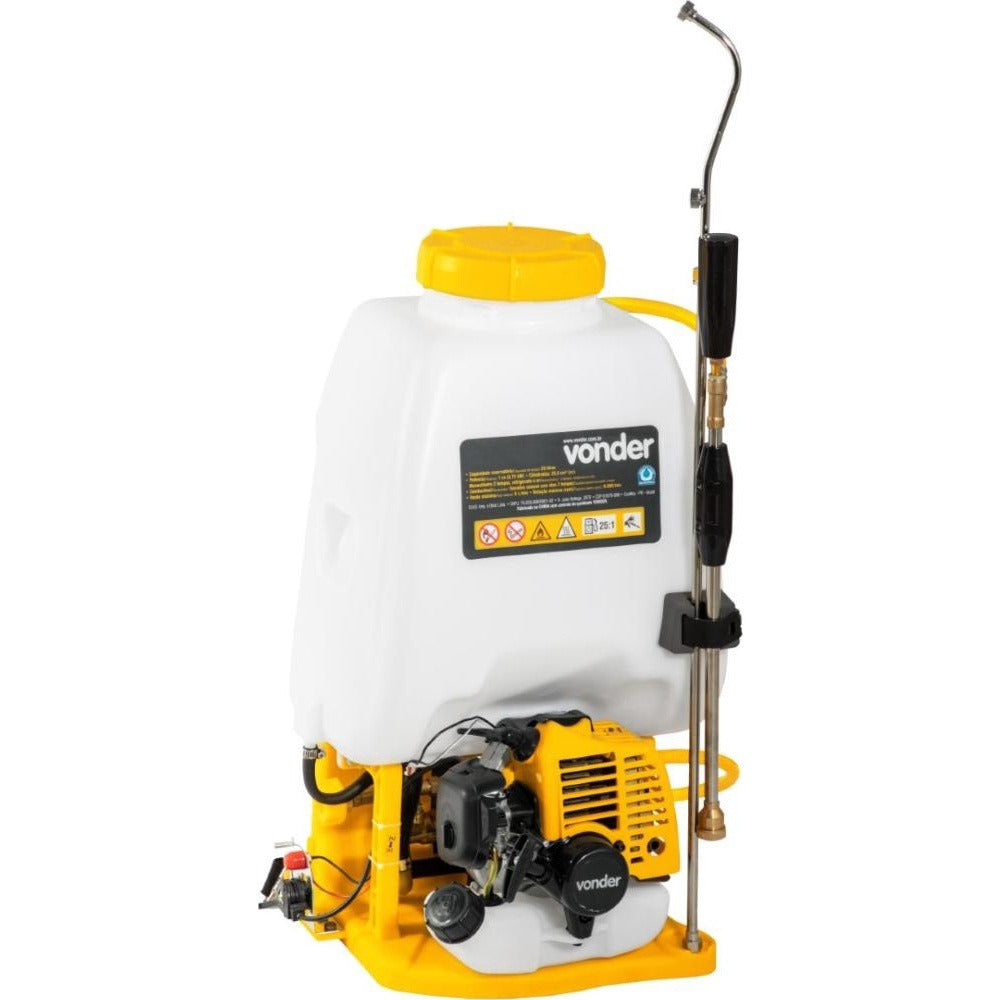 Conteúdo da embalagem: 1 Pulverizador. Acompanha: 1 extensão, 1 lança com 2 bicos leque, 1 lança reta com regulador e bico cônico, 1 mangueira de pressão, 1 empunhadura, 1 kit de vedação, 1 chave de vela, 1 frasco dosador, 1 alça costal, 1 chave allen 10 mm, 1 chave allen 6 mm e 1 chave phillips.