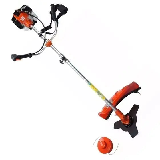 Conteúdo da Embalagem 01 Motor da Roçadeira 63cc a gasolina, 01 Cortador de Nylon, 01 Lâmina de 3 pontas, 01 Manual online, 01 kit de ferramentas e parafusos, 01 Protetor de grama, 01 Galão medidor para mistura de combustível, 01 Um guidão ajustável, 01 Haste, 01 Cinta (alça)