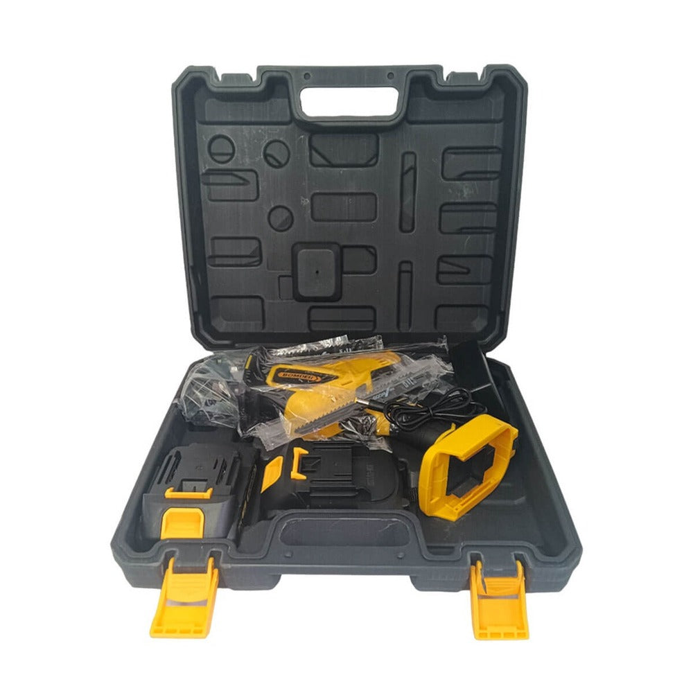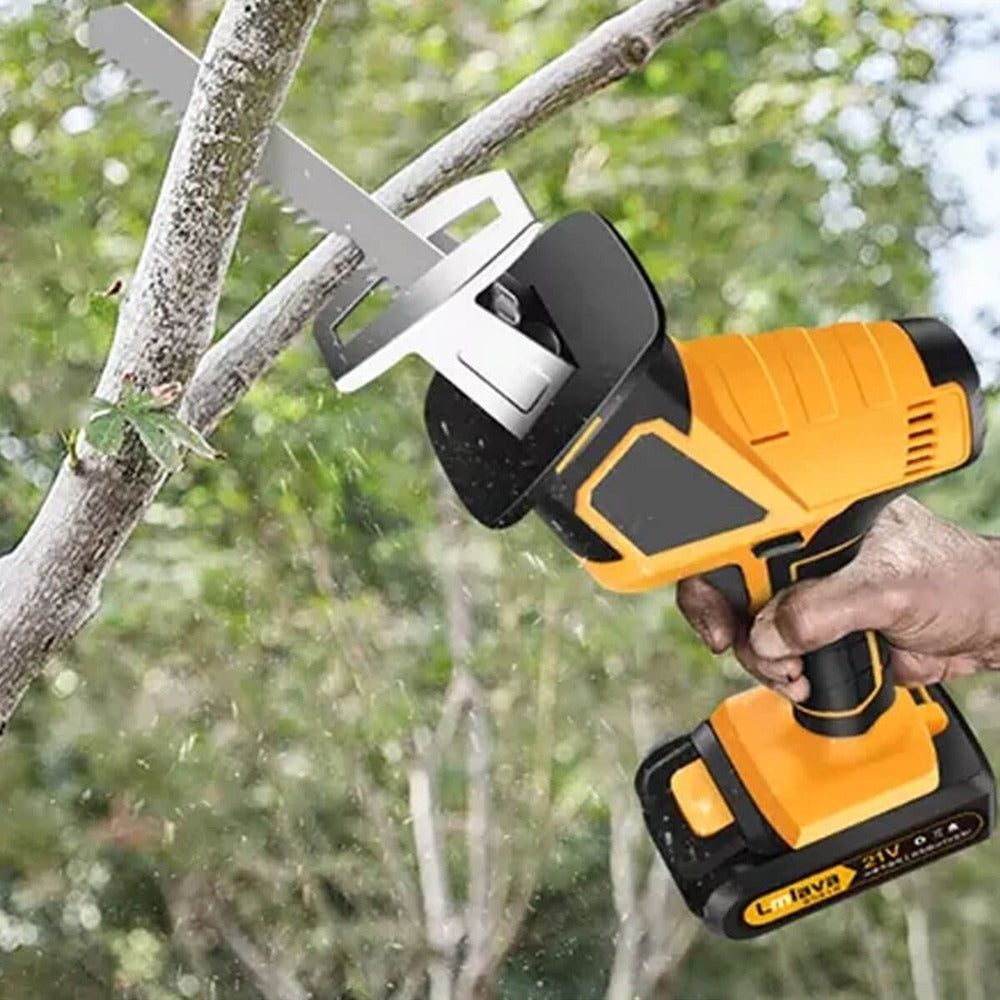 Serra de Poda Portátil, a bateria é recarregável, leve e portátil, com bateria de Lítio. Ferramenta versátil ideal para cortes e podas, melhore sua comodidade ao serrar, podar em qualquer lugar, Faça cortes em galhos e em lugares de difícil acesso. utilize a com a praticidade de se mover sem arrastar fios. Corrente de placa guia de alta qualidade, têmpera profunda, mais resistente ao desgaste, corte suave. Prático, baixo consumo de energia.